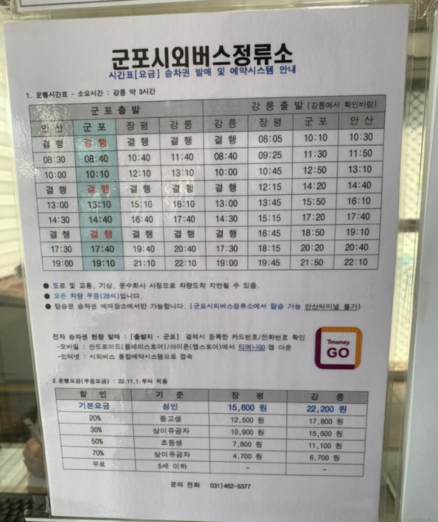 장평 & 강릉 으로 가는 버스만 운행되고 있으므로 이점 꼭 확인 하시길 바랍니다.