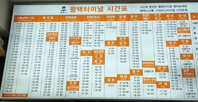평택고속버스터미널 시간표 조회 방법