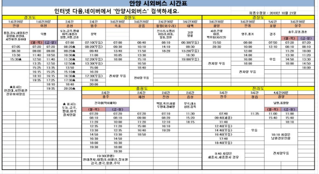 + 위 버튼 클릭시 안양 시외버스터미널 시간표를 조회 하실 수 있습니다.