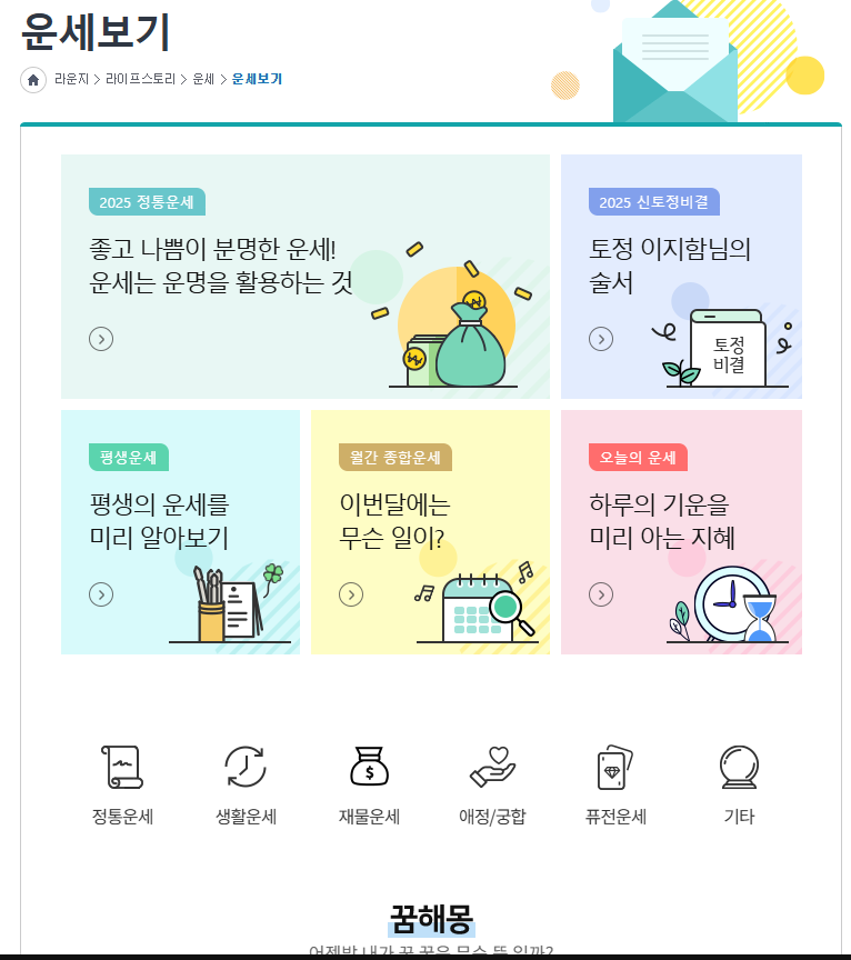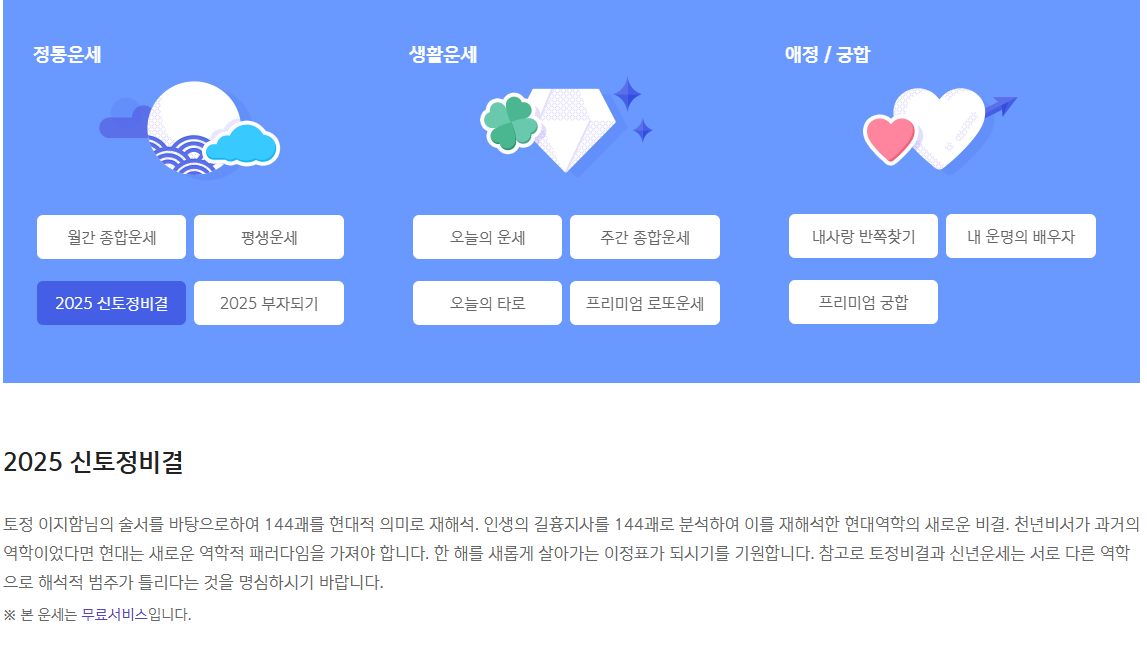 + 위의 링크를 클릭 하시면 2025년 신년 운세를 무료로 볼 수 있는 사이트로 이동 됩니다.