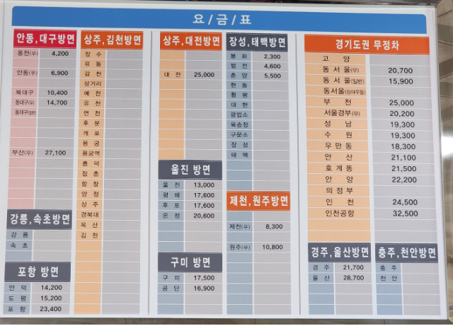 - 첫차와 막차 시간은 터미널 사정에 따라 변경될 수 있으니 이용 전에 반드시 확인하시기 바랍니다.