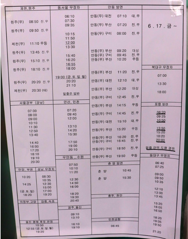 영주고속버스터미널 시간표 조회 방법