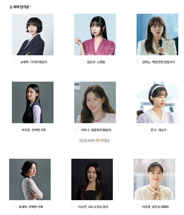 3) KBS 연기대상 후보 및 투표하기