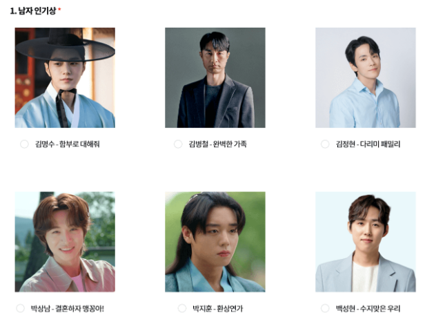 1) 남자 인기상 후보