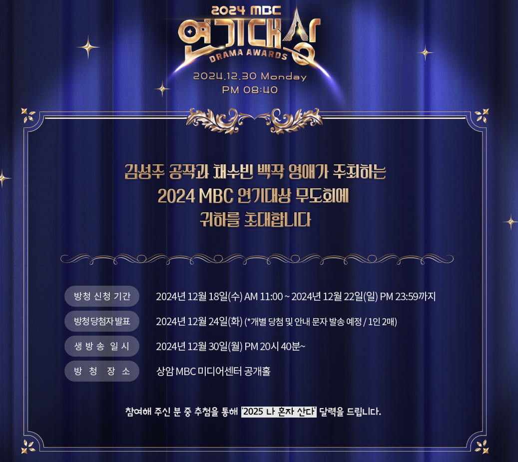 + 아래의 링크를 통해서 2024 MBC 연기대상 방청 신청 방법 과 후보 & 수상작에 대해서 자세하게