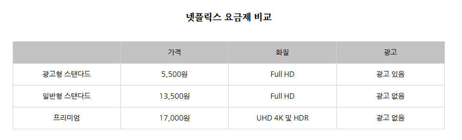 3) 넷플릭스 요금제 비교