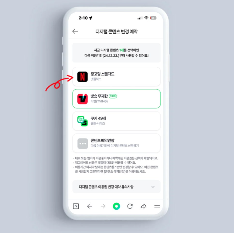 4) 넷플릭스, 티빙, 웹툰 컨텐츠 매월 선택 가능