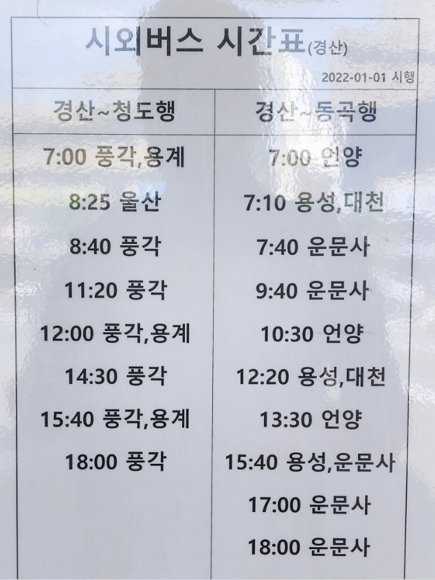경산시외버스터미널 시간표 조회 방법