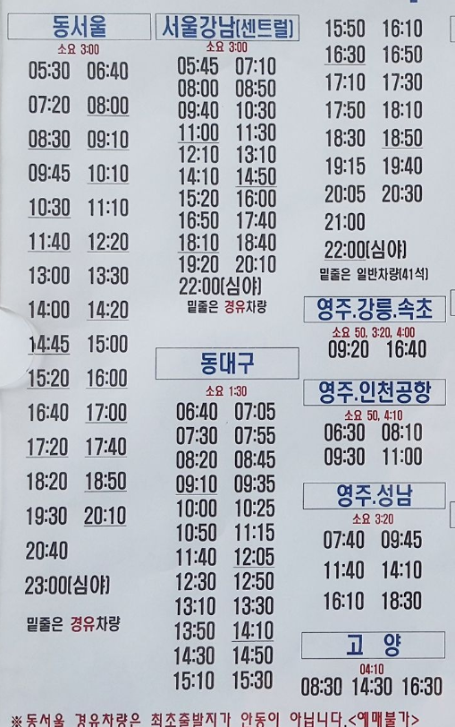 - 첫차/막차 시간은 계절이나 운행 스케줄 변경에 따라 조정될 수 있으니, 출발 전에 확인하세요.