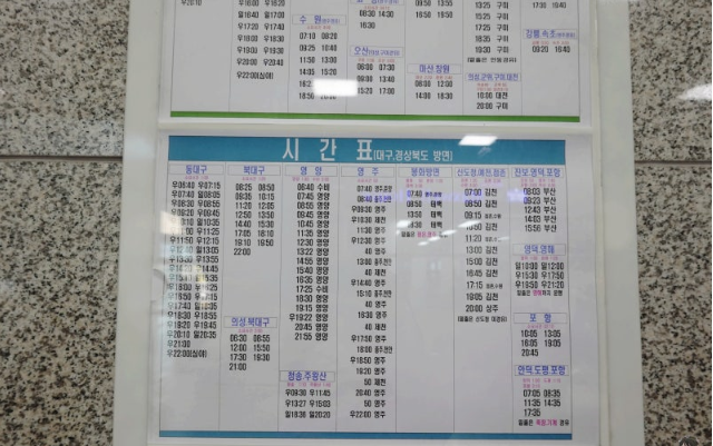+ 위 버튼 클릭시 안동 고속버스터미널 시간표를 조회 하실 수 있습니다.