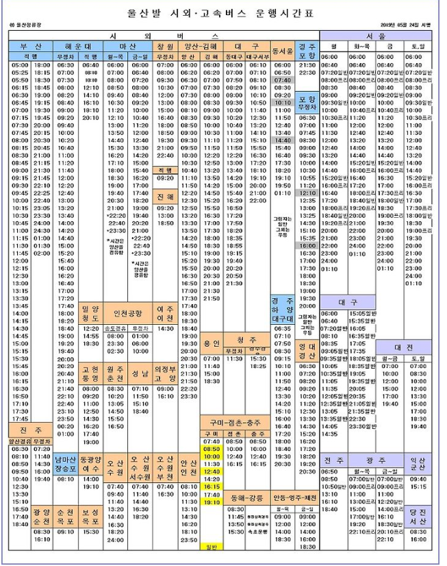 + 위 버튼 클릭시 울산 고속버스터미널 시간표를 조회 하실 수 있습니다.