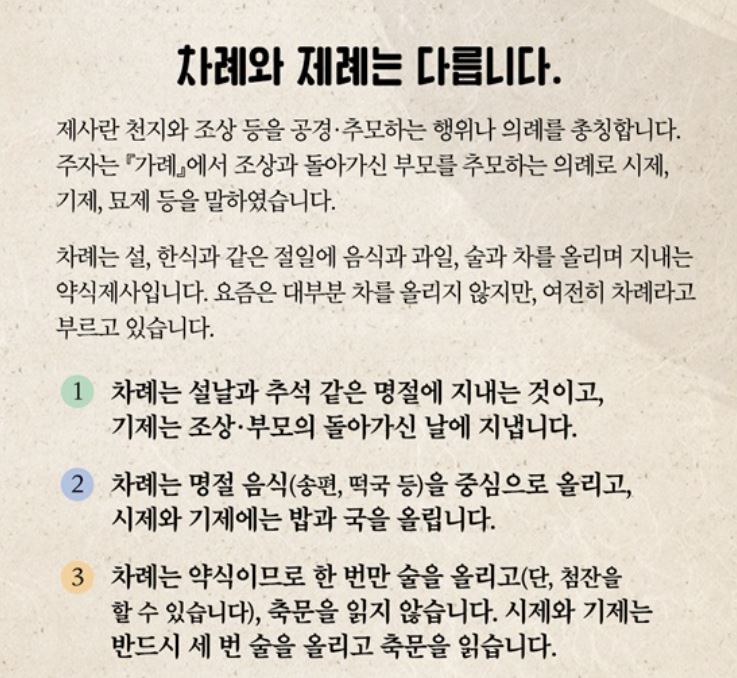 - 순서: 모든 음식을 내리고, 상을 치운 후 마지막으로 절을 두 번 올려 조상님을 배웅합니다. 이 과정에서 모든 가족이 함께 절을 올립니다.
