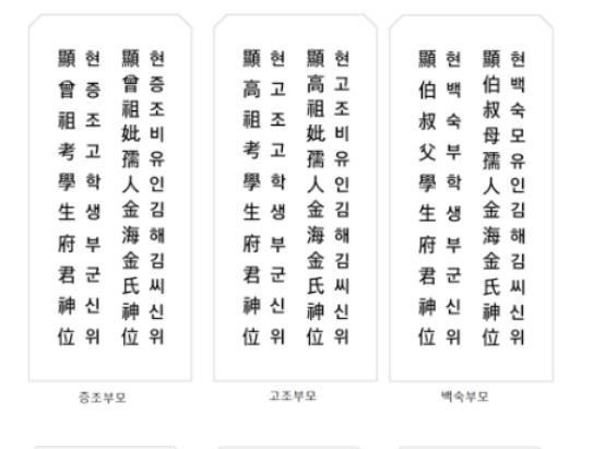 - 할아버지: 顯祖考○○大人神位 (현조고 ○○대인 신위)