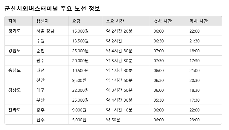 + 위 버튼 클릭시 군산 시외버스터미널 시간표를 조회 하실 수 있습니다.