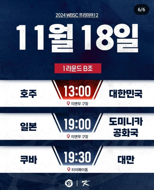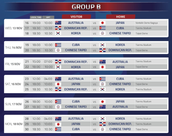 - 그룹 B : 호주, 일본, 도미니카 공화국, 한국, 쿠바, 대만