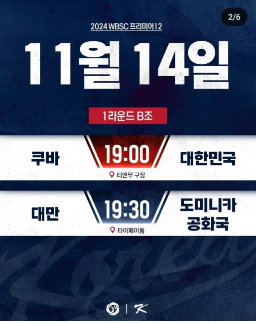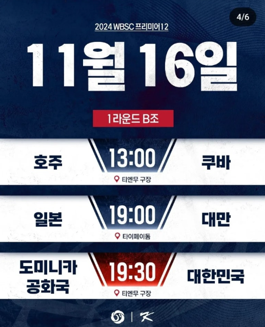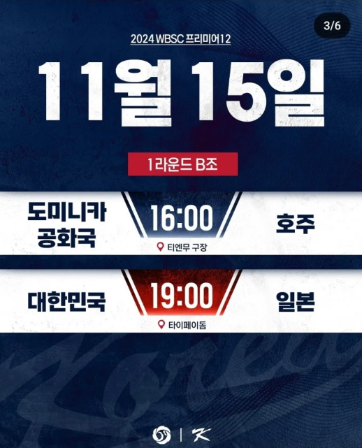 + 위의 버튼을 통해서 프리미어 12 일정을 그림으로 보기 쉽게 확인 가능 합니다.
