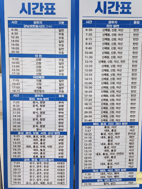 예산고속버스터미널 시간표 조회 방법
