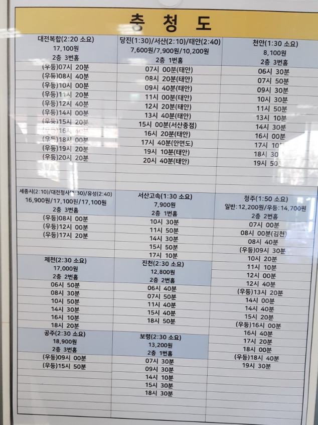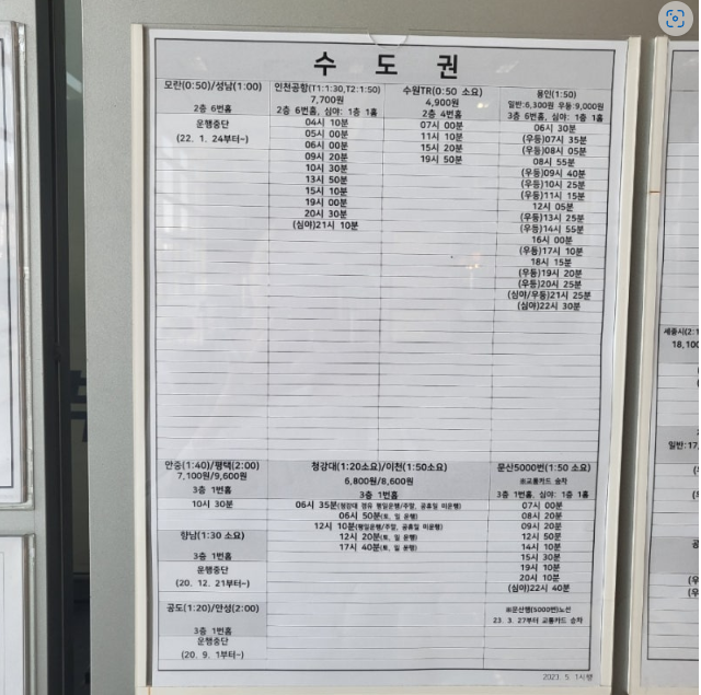 - 터미널 이용객이 많아지는 시간대(주말 및 공휴일)에는 만차가 발생할 수 있으니 여유 있게 도착하는 것이 좋습니다.