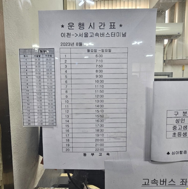 이천고속버스터미널 시간표 조회 방법