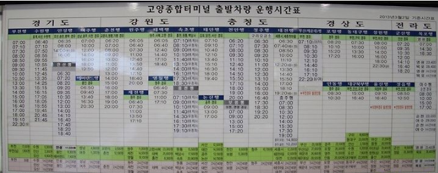 고양고속버스터미널 시간표 조회 방법